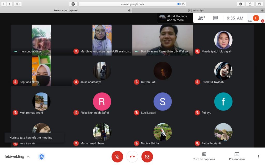 Senin 28 September 2020 Fakultas Ekonomi dan Bisnis Islam mengadakan Webinar bertajuk lingkungan hidup dalam rangka mensukseskan program UIN walisongo menjadi green campus. Webinar berjudul pengaruh pandemi covid-19 terhadap lingkungan hidup di Indonesia ini sukses mendapatkan perhatian dari lima puluh peserta yang terdiri dari dosen dan mahasiswa. Webinar diawali dengan sambutan oleh wakil dekan III bapak Drs. Saekhu, MH. Pada sambutannya beliau menyatakan pentingnya menjaga lingkungan hidup ditengah berbagai isu pemanasan global dan beberapa bencana akibat ulah manusia. Oleh karenanya, webinar yang membahas tentang lingkungan hidup ini perlu diadakan guna memberikan wawasan dan penetahuan dalam menjaga lingkungan hidup.