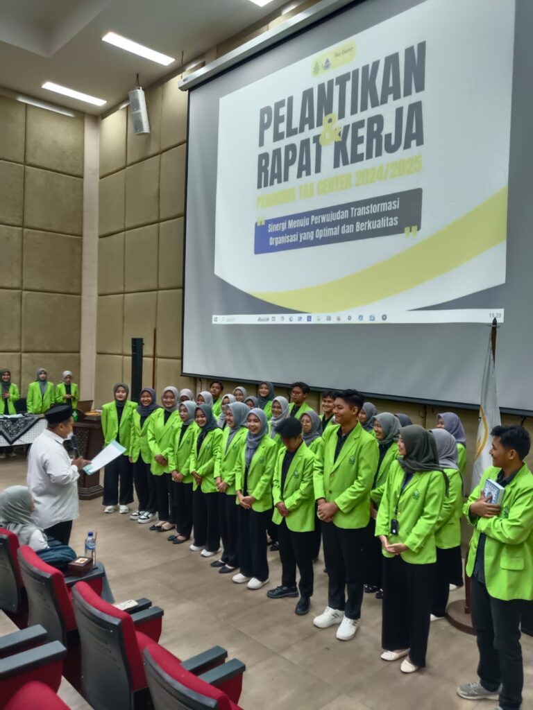 Semarang- Senin, 11 November 2024.Tax Center UIN Walisongo Semarang telah melaksanakan pelantikan dan rapat kerja kepengurusan untuk periode 2024/2025 dengan tema “Sinergi Menuju Perwujudan Transformasi Organisasi yang Optimal dan Berkualitas” pada hari Senin, 11 November 2024. Pelantikan dan Rapat Kerja ini bertempat di ruang teater isdb FITK, kampus 3, UIN Walisongo Semarang. Acara ini dihadiri oleh Bapak Dr. H. Nur Fatoni, M.Ag. selaku Dekan Fakultas Ekonomi dan Bisnis Islam (FEBI), Ibu Naili Saadah, SE., M.Si., AK., CA, selaku Pembina Tax Center UIN Walisongo dan para Demisioner serta para calon pengurus Tax Center periode 2024/2025. Sebanyak 35 mahasiswa dari Fakultas Ekonomi dan Bisnis Islam (FEBI) dilantik langsung oleh Bapak Dr. H. Nur Fatoni, M.Ag. selaku Dekan Fakultas Ekonomi dan Bisnis Islam UIN Walisongo Semarang.