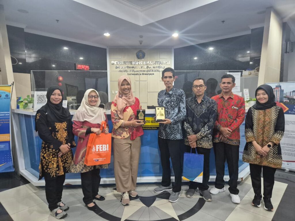 Selanjutnya, rombongan FEBI melanjutkan kunjungan ke Fakultas Ekonomi dan Bisnis (FEB) Universitas Brawijaya. Rombongan disambut secara resmi oleh Yeney Widya Prihatiningtias, DBA., Ak., CA selaku Kepala Departemen Akuntansi, Dr. Sari Atmini, M.Si., Ak selaku Sekretaris Departemen Akuntansi, dan Dr. Arum Prastiwi, M.Si., Ak selaku Ketua Program Studi Akuntansi FEB Universitas Brawijaya.
