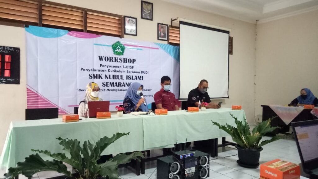 Semarang; (Senin,14/6/21) Kurikulum Tingkat Satuan Pendidikan (KTSP) adalah sebuah kurikulum operasional pendidikan yang disusun, dikembangkan dan dilaksanakan oleh satuan pendidikan. Dalam mempersiapkan tahun pelajaran baru dan mencetak alumni siap terjun di dunia industri ataupun dunia kerja SMK Nurul Islami gandeng beberapa Dosen Prodi Akuntansi Syariah UIN Walisongo dan beberapa dunia usaha. Review kurikulum dalam bentuk workshop dengan mengangkat tema “Penyusunan E-KTSP dan Penyelarasan Kurikulum bersama PT dan DUDI”. Acara ini dilangsungkan secara off line pada hari senin tanggal 14 Juni 2021 Kemarin.